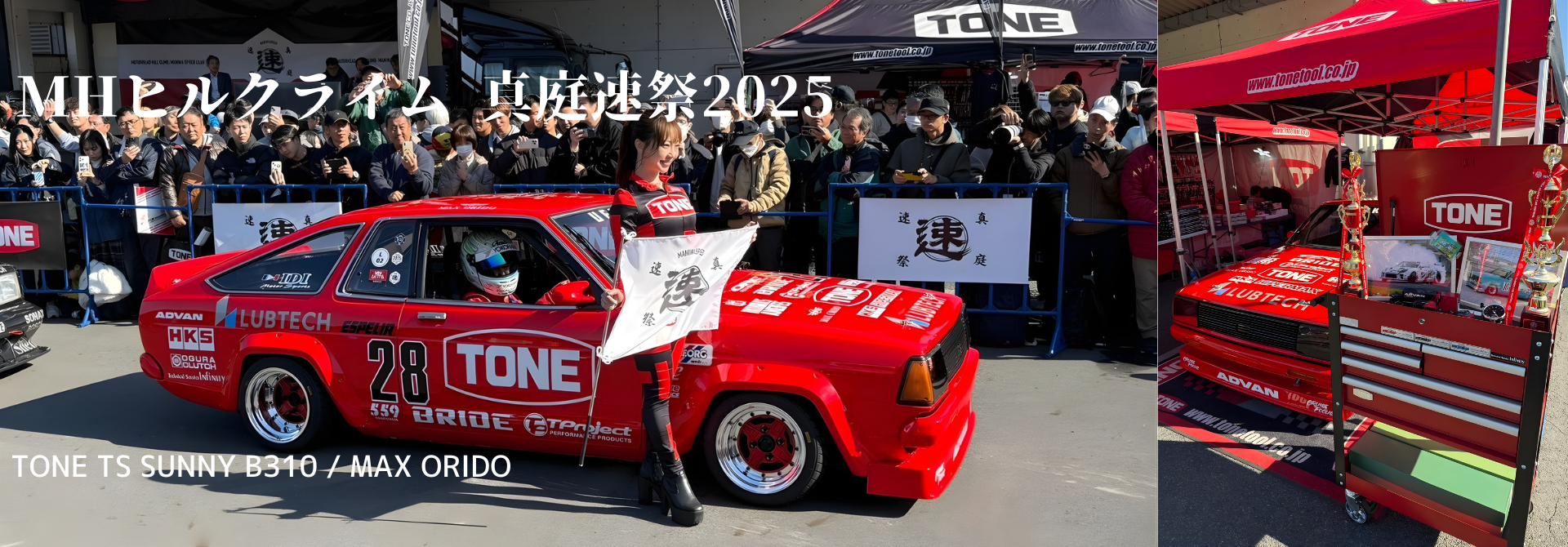 YOKOHAMA / ADVANのワンメイクとなる“TSカップ”に参戦するADVANカラーを纏ったB310サニーの姿を密着レポート。迫力のサウンド、戦う男たちの熱き想い、そして興奮必至のレースまで、余すことなくお伝えします。決勝レースでは織戸茉彩が勝利の女神に?!